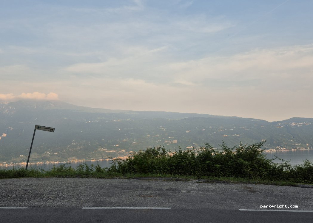 Excellent views of Lake Garda, however on a sligh slope. Very windy roads on the way up. Very peaceful only had afew cars pass us the whole evening.