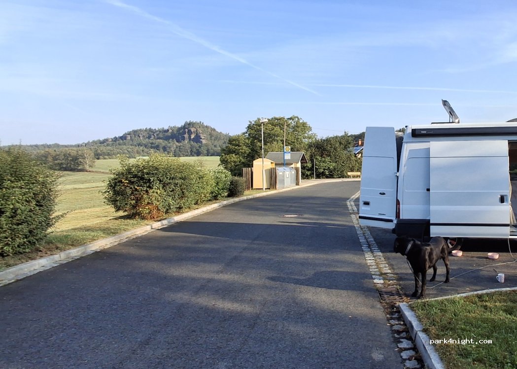 Piccolo parcheggio a Weissig proprio ai margini del campo. Anche se si trova direttamente sulla strada principale, non è un problema perché di notte non ci sono quasi auto. Secondo la segnaletica, il parcheggio è autorizzato dal lunedì al venerdì dalle 22:00 alle 07:00.