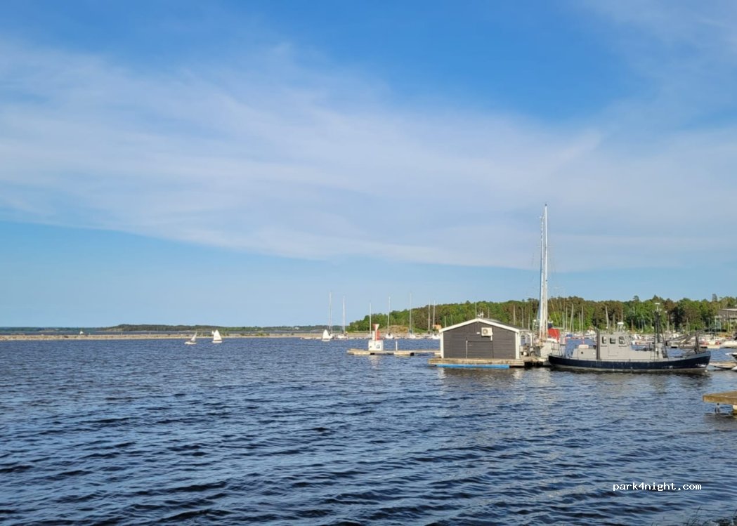 Sehr schöner, kleiner Stellplatz direkt an einem wenig belebten Yachthafen (Trotz Sonntag im August) in einer Ostseebucht. Ruhig, kostenlos, keine Ver- und Entsorgung. Hübsches italienisches Lokal direkt dabei. Man trinkt einen Kaffee (80 skr) und benutzt gerne die saubere Toilette. Ideal für eine Nacht. Danke an den Tippgeber!