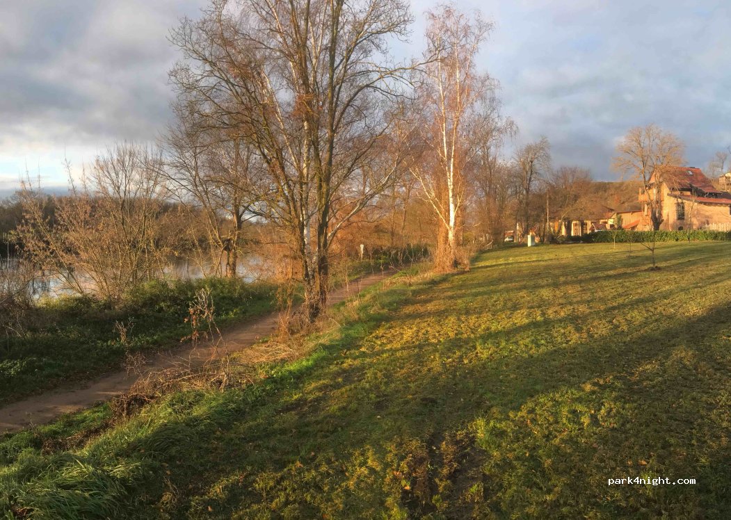 Place de parking dans une prairie directement sur la Saale, dans les Alpes de Brachwitz. Le Café SaaLeKiez est ouvert ici le week-end. Après consultation, vous pouvez également obtenir la clé des toilettes ici.