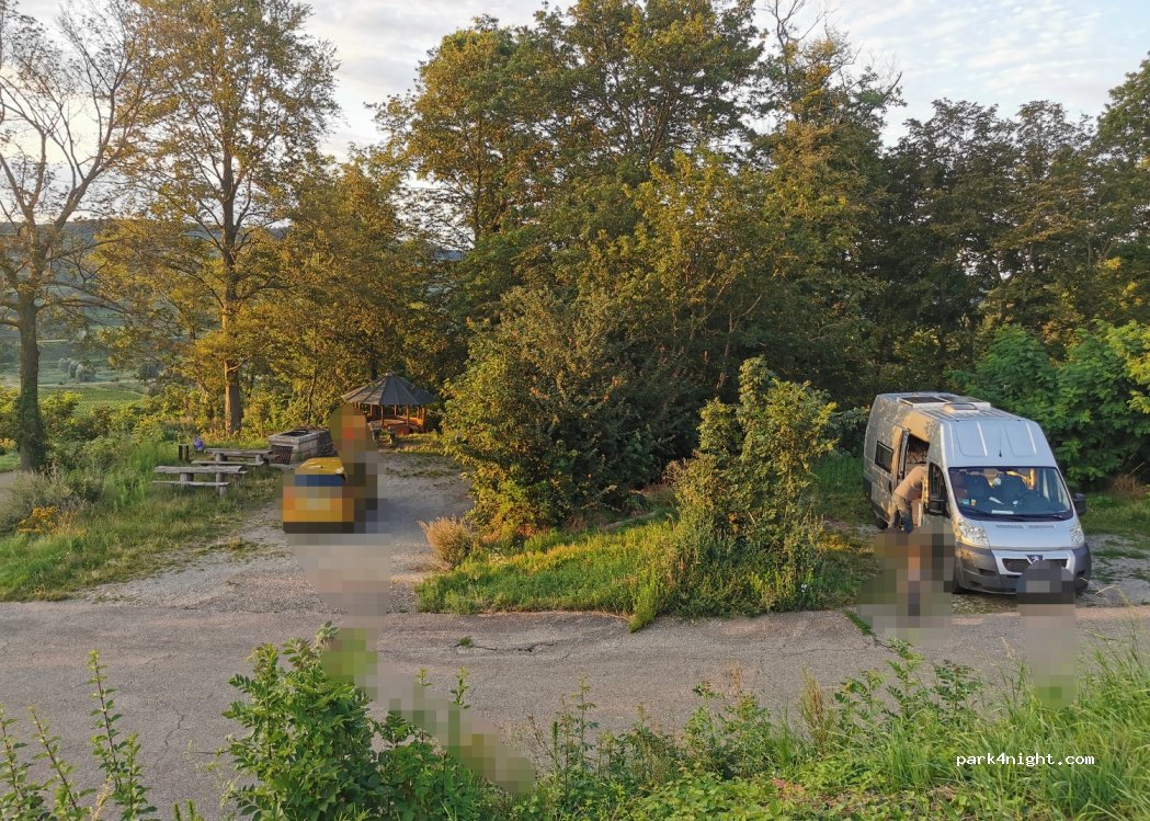 Kleiner Wanderparkplatz zwischen Wald und Weinbergen. Wunderbare Aussicht. Grillplatz vorhanden.