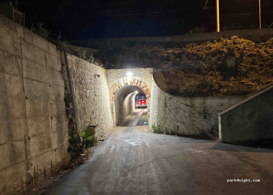 Il navigatore vi proporrà strade inesistenti per raggiungerlo. Dovete andare oltre la stazione dove c’è il sottopassaggio percorribile solo in auto o con un van. Il sottopassaggio è sia molto stretto che basso. Non sono presenti indicazioni ma noi con camper alto 2.90 non ci siamo passati. Ho messo foto del passaggio.