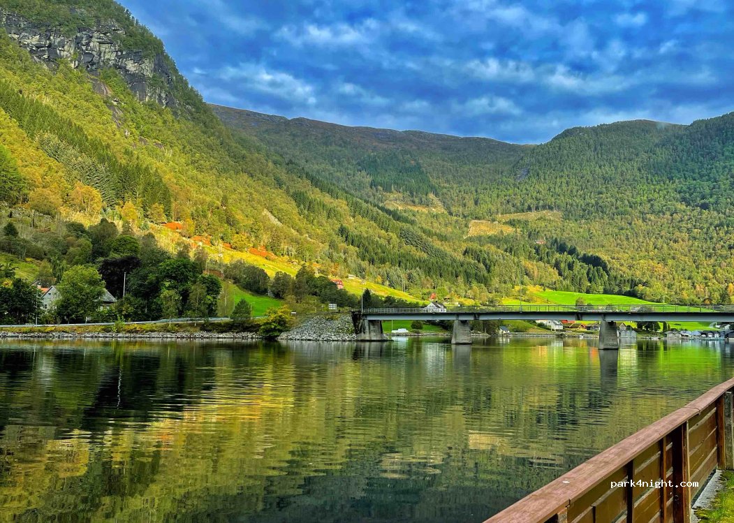 Netter kleiner Campingplatz, mehr Hütten als Stellplätze. Anglercamping, mit Bootsverleih, Felitierplatz usw. 1xKlo und 1xDusche, da aber wenig Camper hier Platz haben reicht das. Alles sauber & ordentlich. Waschmaschine, kleine Küche. Stellplatz direkt am Wasser. Anmelden im Kiosk, hier gibt's auch alles nötige zum Überleben. Schöne Aussicht auf Fjord & Berge, sehr ruhig.