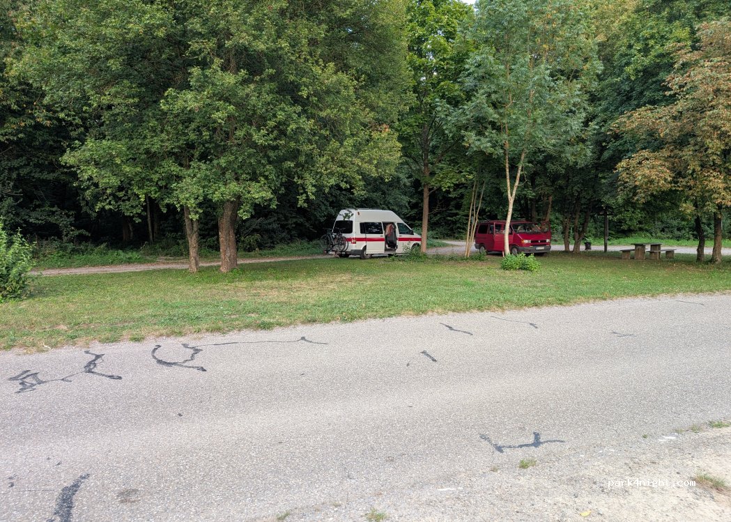 Leider wurden inzwischen alle Büsche zwischen Straße und Parkplatz entfernt wodurch man direkte Sicht auf den Parkplatz hat von der Straße. Um 20:00 war noch viel Verkehr auf der Straße. Für uns war es doch zu exponiert für eine Übernachtung. Eine Sitzbank und ein Mülleimer sind vorhanden. Für eine Nacht ganz wahrscheinlich ganz ok.