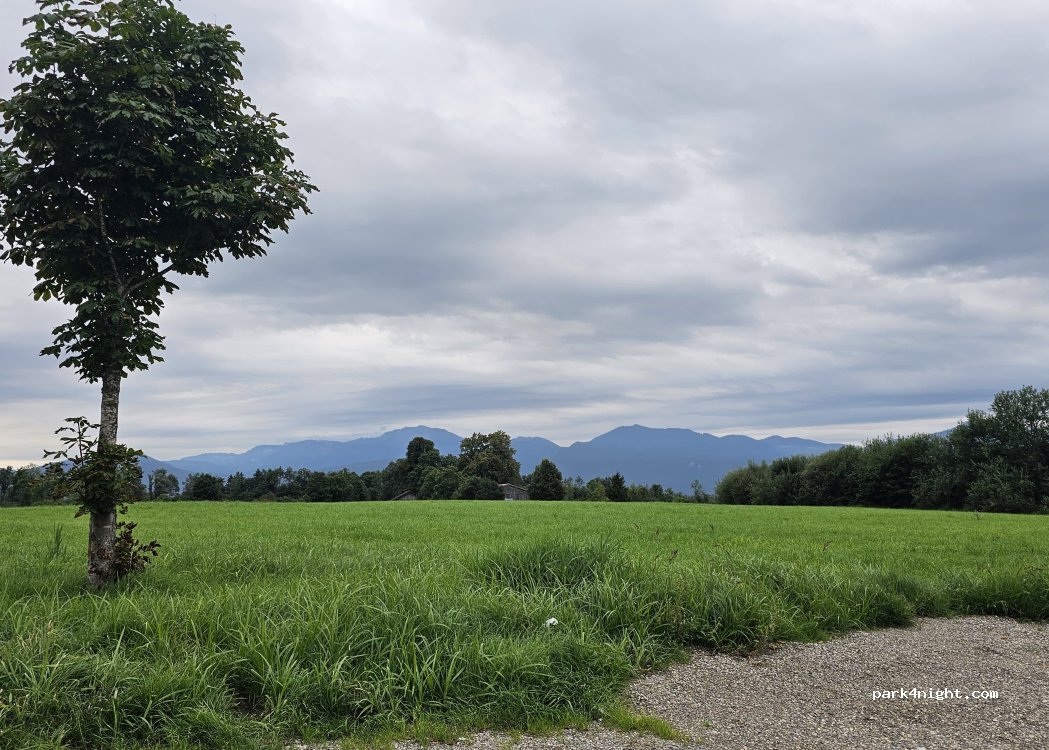 Super Platz zum Übernachten. Die Autobahn hörten wir kaum. Die Kuhglocken hörten wir mehr. Urlaubsstimmung pur. Camper ganz zum Ende des Parkplatzes fahren.