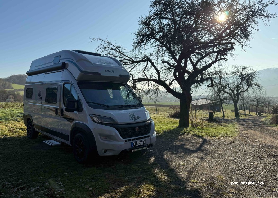 Super Platz, besonders im September. die Obstbäume Drumherum sind gespickt mit Äpfeln, Birnen und Pflaumen. Die vorbeikommenden Anwohner sind super freundlich gewesen. hinter den besagten Stellflächen ist eine Wiese als "Trekkingwiese" gekennzeichnet auf der man kostenlos in Zelten campen kann. Auch vorhanden ist eine kleine Hütte mit Grillanlage.
