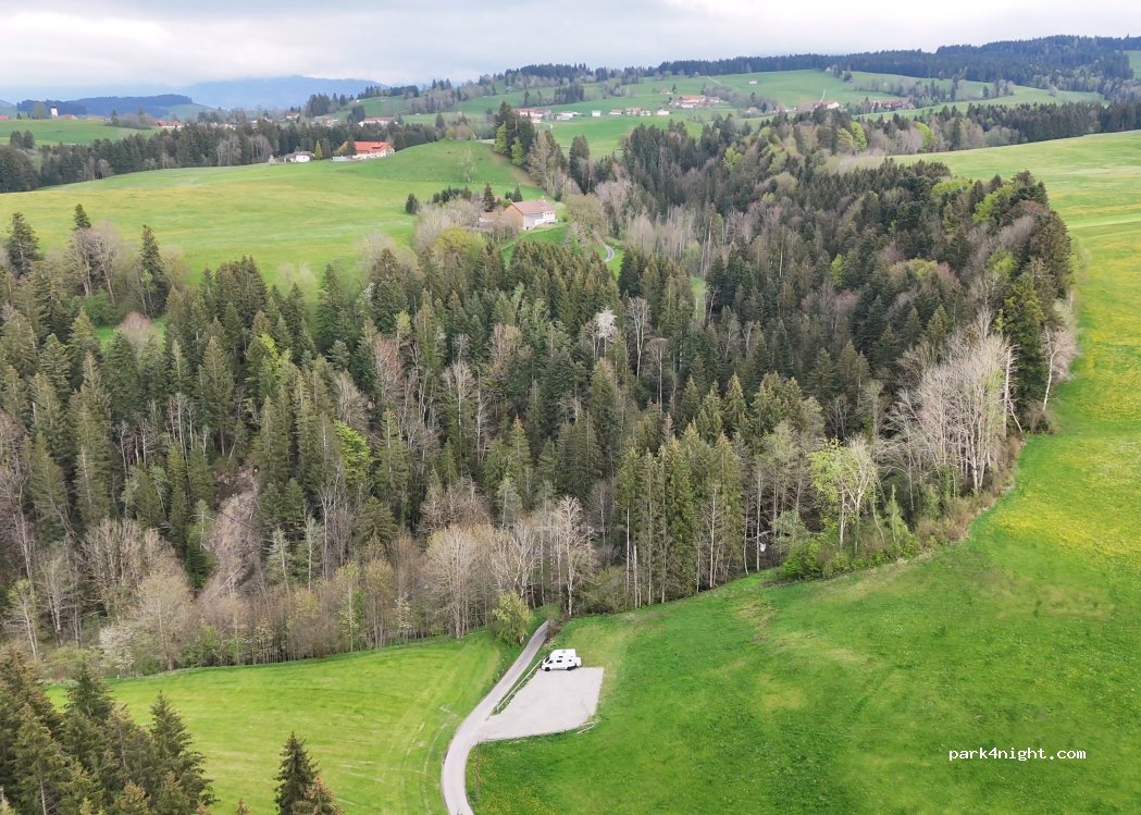 schöner und ruhiger Parkplatz direkt am Waldrand. vorne schräg auf Schotter, hinten eben auf Gras. Anfahrt nur über Untertrogen oder Riegen. Fast kein Netz.