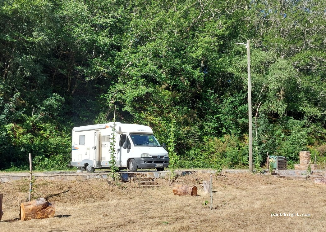 Place they equip for parking motorhomes. Area paved with gray water. Place with picnic tables. Located in the heart of the chestnut forest, very close to the town of Santa Eufemia do Caurel. In the city there is a bar-boutique Pepe. There is also a woodworker and nearby hiking, mountain biking or road cycling routes
