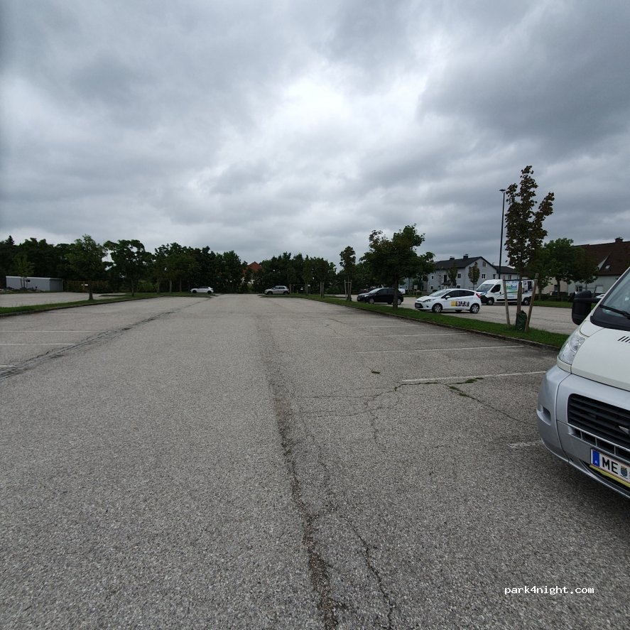 Großer Autoparkplatz an Friedhof und stark befahrener Zubringerstraße zur Stadt. Den nahen Bahnhof hört man kaum. Einige spätabendliche Besucher drehten mit ihrem Auto ihre Runden. Eine Polizeistreife begutachtete uns, fuhr aber weiter. Keine Erkenntnis zur Versorgung mit Lebensmitteln etc. Für eine Zwischenübernachtung völlig okay!