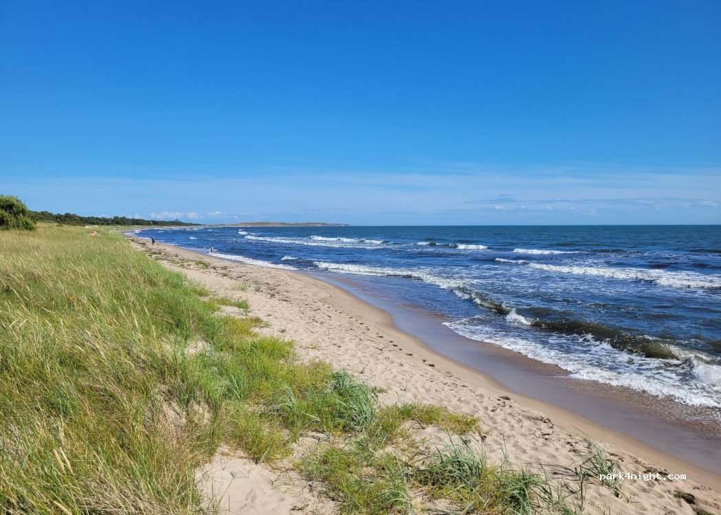 Direkt am Meer, gleich hinter der Düne. Camping mit einem Camper, aber auch Zelten möglich. Sehr nette Betreiber. Sozialgebäude werden mehrmals täglich gereinigt. Alles ist sauber.