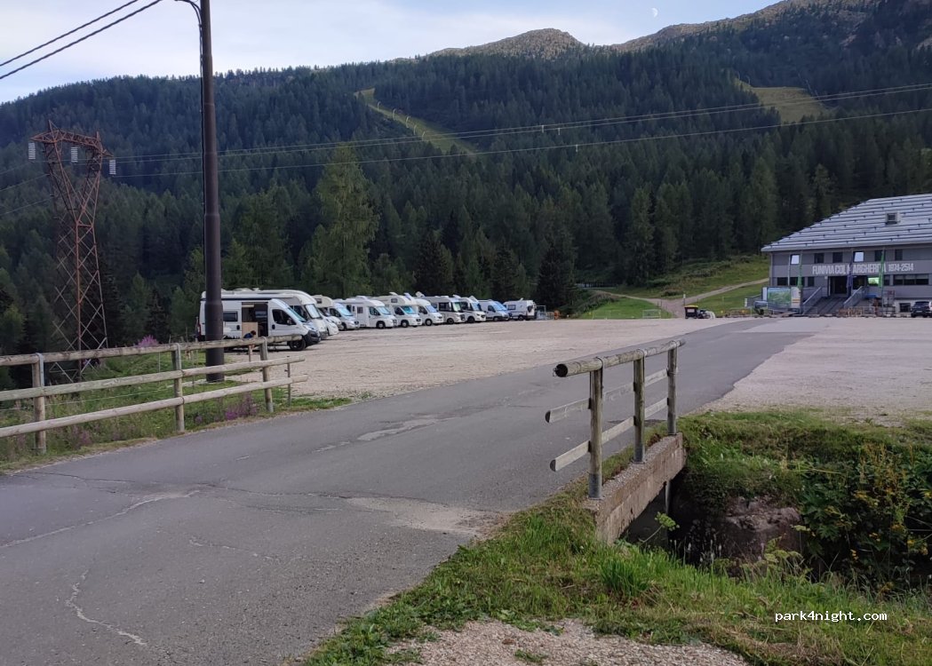 Parcheggio per l'impianto di risalita per Col Margherita. Parcheggio gratuito per tutto il tempo che vuoi. Ho soggiornato qui per due notti senza alcun problema. Anche la gente del posto usa questo parcheggio in modo che tu non sia l'unico. La strada principale è molto vicina ma molto tranquilla di notte. Posto perfetto per percorrere i sentieri intorno a questa regione.