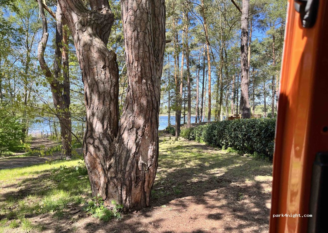 Ein sehr ruhiger Platz in unmittelbarer Nähe zum See, dort befindet sich eine Badestelle mit Steg. Die Bäume bieten etwas Schatten. Die Klinik ist im Sichtbereich, hat uns aber überhaupt nicht gestört. 4 weitere Camper waren vor Ort.