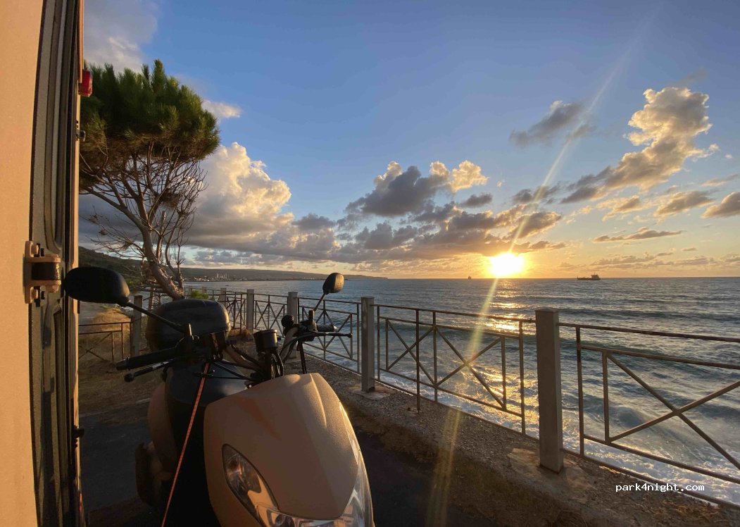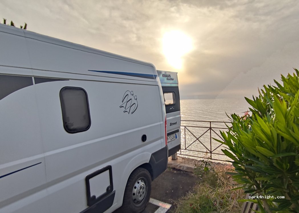 Amazing views. If you have bike, this the perfect spot/area to park your van here and go visit Pizzo. A small city with interesting restaurants and souvenir shops. Loads of view points to take pictures of. Safe area, locals come to take pictures of the view overlooking the parking spot but leave after 2 minues.