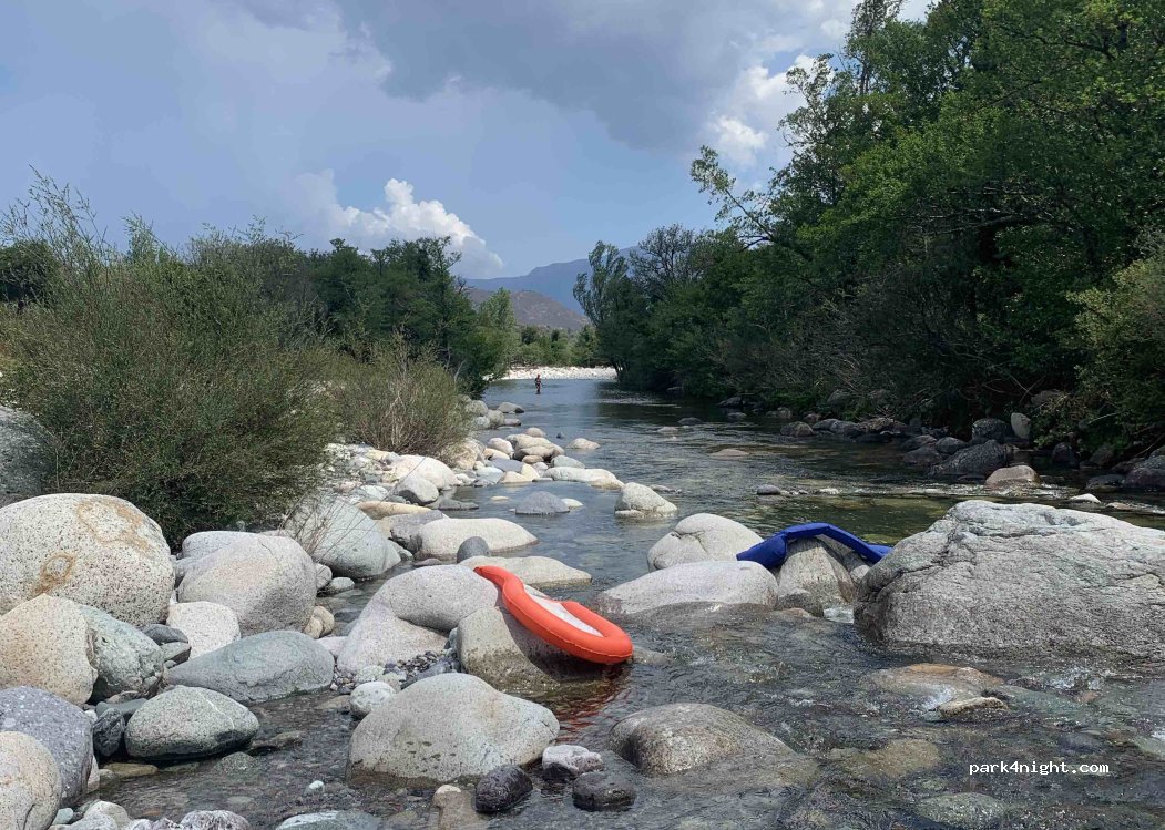 Parfait petit camping familial très ombragé et propriétaires accueillants donnant de bons conseils touristiques. Bord de rivière super sympa et petite piscine bien agréable. Super point de départ pour visiter la vallée d'Asco et ses randonnées. Pizzas et restaurant à l'entrée extra. Sanitaires nickels. A recommander. 40 €, 4 personnes avec van et électricité