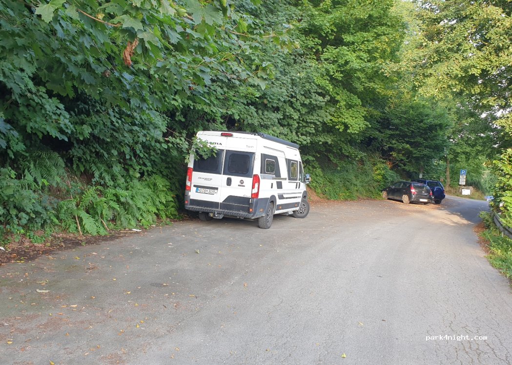 Small parking lot right on a very quiet street. No exclusion of mobile homes and a wonderful view of half-timbered houses. Castle nearby.