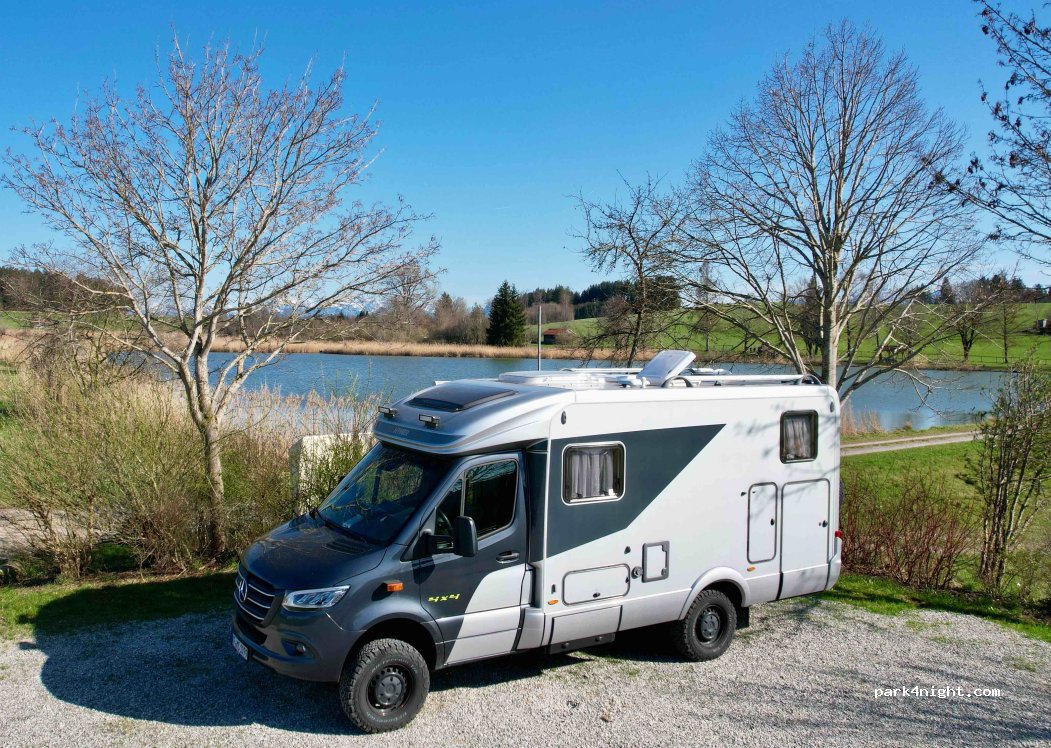 Schöner Stellplatz an einem Badeweiher. Leider Parken viele Wohnmobile so miserabel um ihre Markise auszufahren das sie den anderen den Platz wegnehmen.