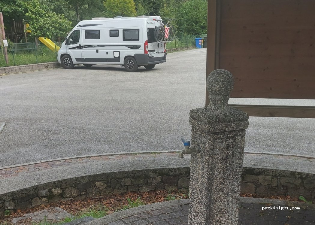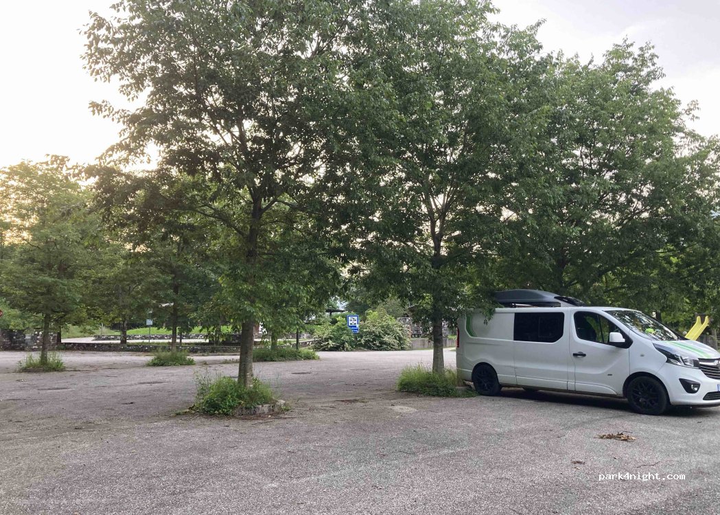 Excellente nuit sur ce lieu. Nous étions seuls c’était très agréable. Parking goudronné et éclairé. Eau potable à disposition et aire de vidange. Très calme au milieu des montagnes, à noter la route un peu sinueuse pour y arriver !