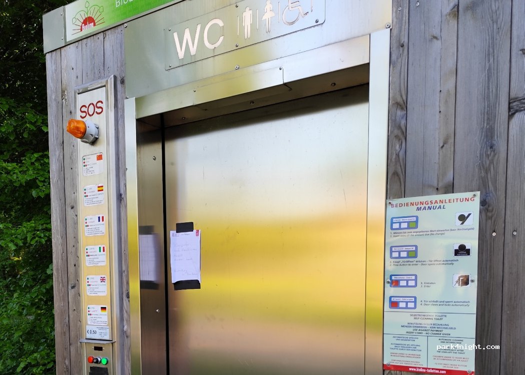 Petit parking près d'une route. Peu de service mais c'était suffisant pour dormir. La région offre de nombreuses possibilités de randonnées et de promenades. A 150 mètres le long du sentier de randonnée en direction de l'aire de jeux pour enfants balisée se trouve une toilette publique, autonettoyante et payante (accessible aux handicapés).