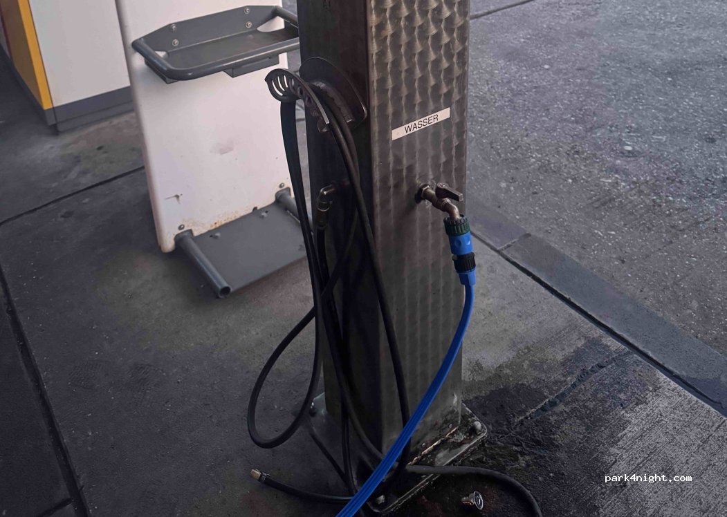 Öffentliche Toiletten. Dusche im selben Block verfügbar und Kaution am Tankstellenschalter. Der Ausweis muss beim Duschen an der Kasse hinterlegt werden. Schön warm, keine zeitliche Begrenzung!