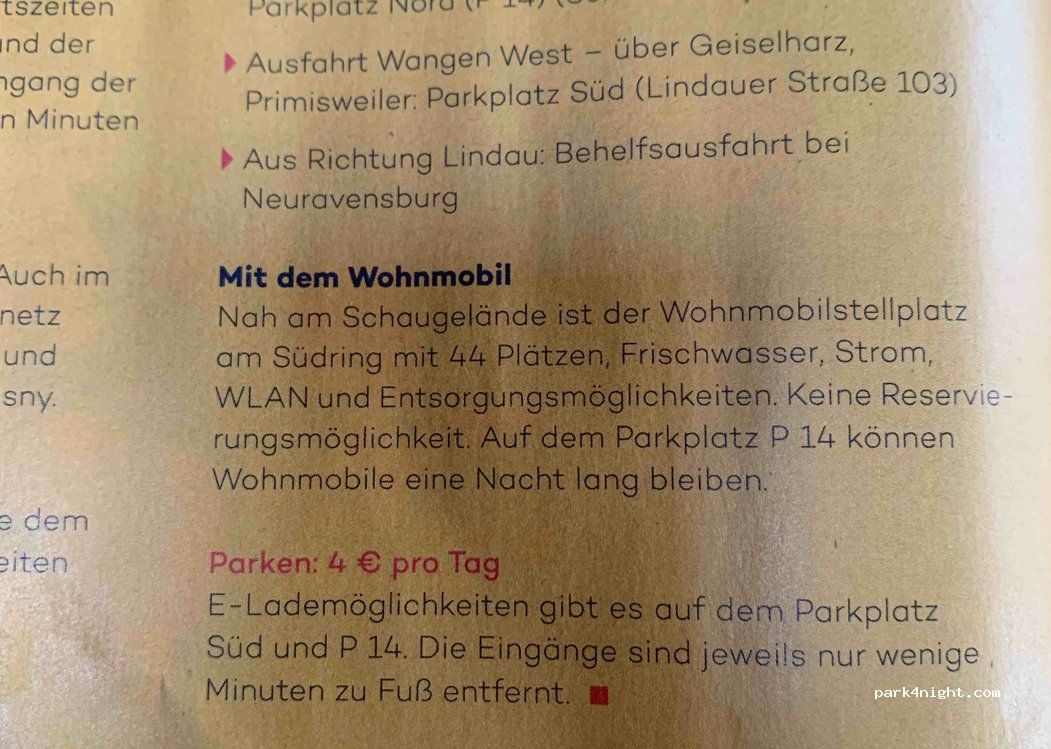 Für einen Tagesausflug nach Wangen ist der Platz gut geeignet. Parken ist kostenlos und man ist in 5 Minuten in der Innenstadt. Aber wichtig: Wohnmobile dürfen hier nur tagsüber zwischen 8 und 20 Uhr parken. Übernachten ist nicht erlaubt.