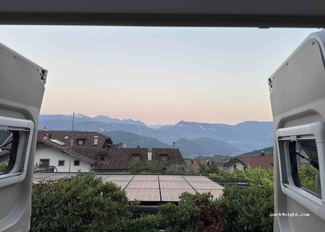 Great car park in Kaltern - St. Nikolaus. Parking lot itself not super nice but since we hadn't found anything good at park4night, we mocked it ourselves. The village pub around the corner has great food and the view is very nice over the lake and vineyards. Enjoy! :)