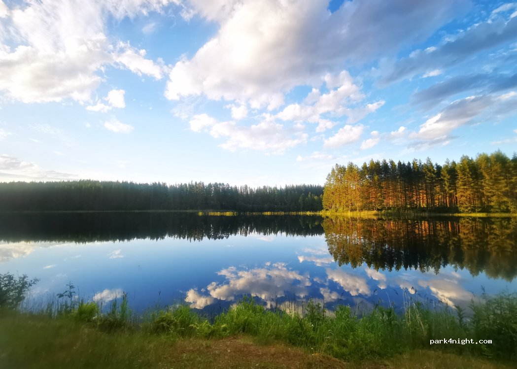 Lonely place by the lake. The road can be heard minimally. No passing cars right on the square! Picnic benches, shelter, dry toilet, rubbish bin, fireplace.