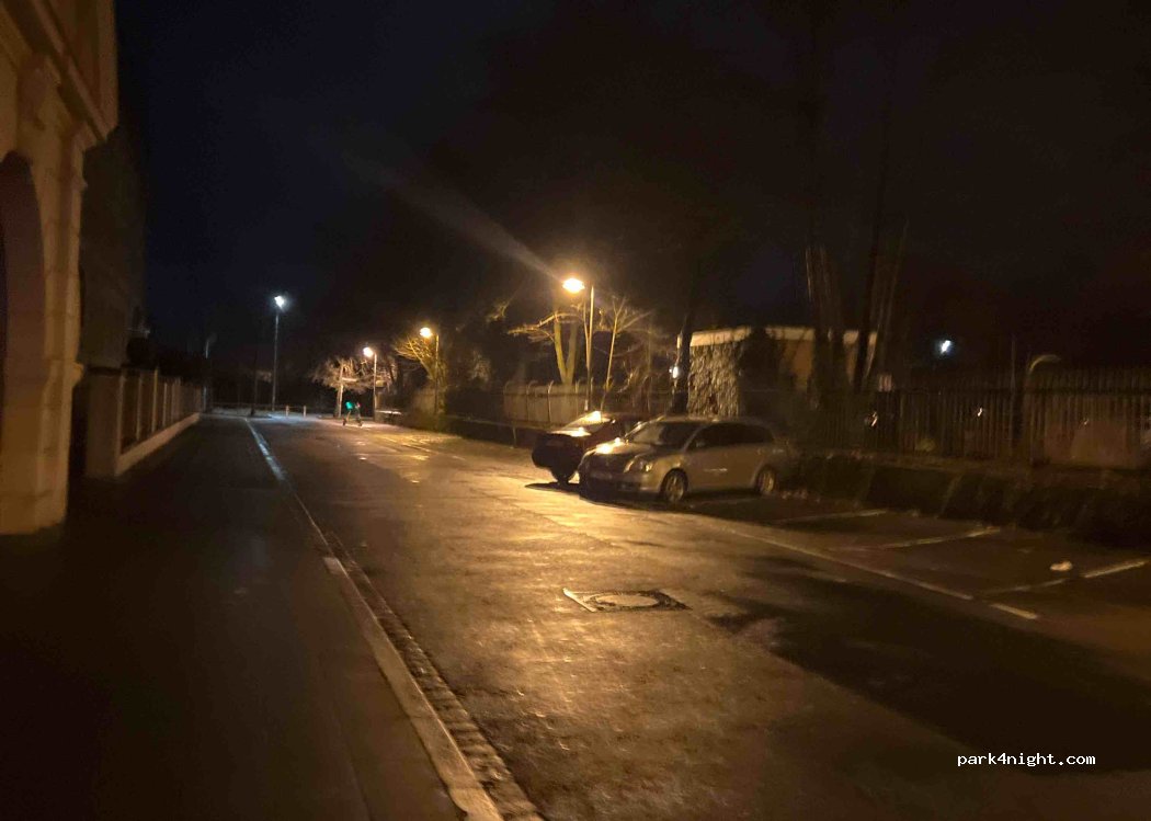 Rue à double sens avec une voiture, vous pouvez vous garer des deux côtés gratuitement. Nous n'avons vu aucun parcmètre ni interdiction de stationner, il y avait un autre camping-car déjà garé, des voitures et des camions. Nous dormons très bien la nuit. Belle promenade le long de la rivière pour se rendre au centre.