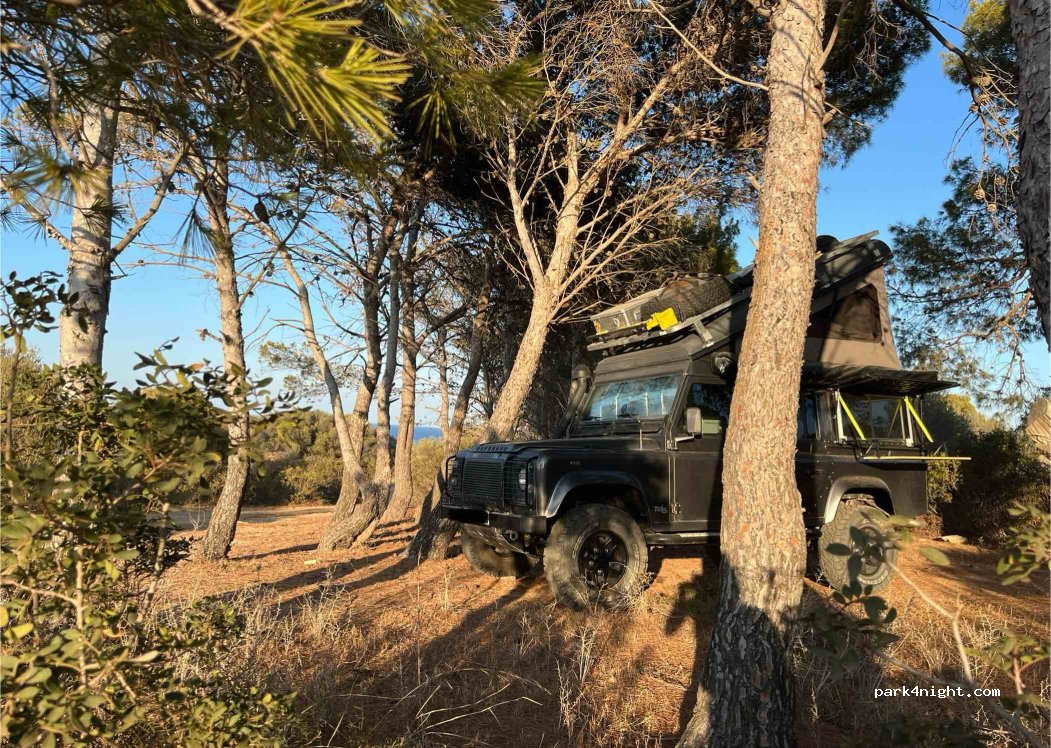 Great spot in a small pine forest. Shaded spots, there were plenty of them for smaller or bigger cars. There were some 3-4cars with us, but not in eqch other’s sight. We stayed for two nights and even left our car there during the day to go to the beach (15min walking).