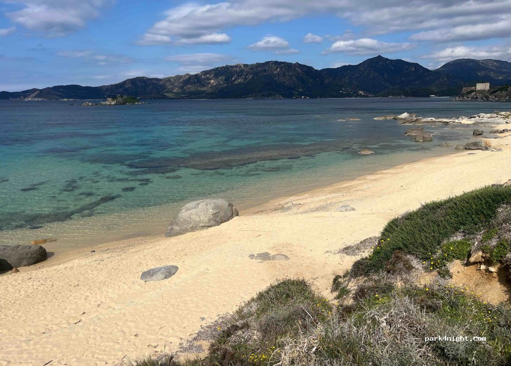 Bel endroit en pleine nature avec vue sur la tour de Porto Giunco et sur la mer.
