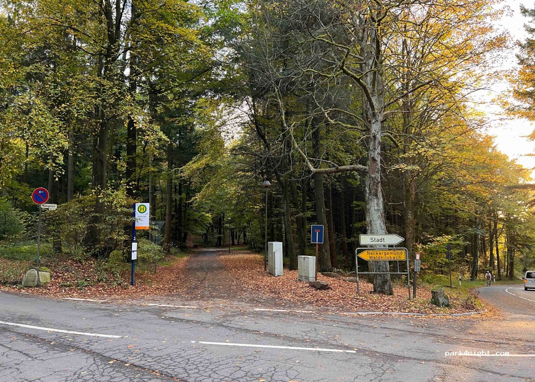 Beleuchteter Parkplatz bei der Sternwarte in einer Sackgasse ca. 400m vom Aussichtspunkt des Königstuhls entfernt. Der Parkplatz besteht aus einem vorderen und hinteren Teil. Nachts sehr ruhig.