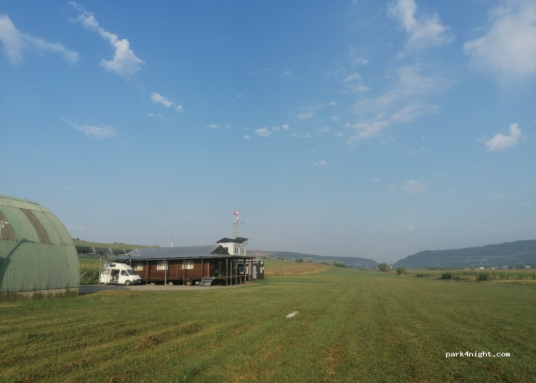 Please call before arriving. One of the quietest and most peaceful places I visited in Romania. The surrounding nature is incredibly beautiful, endless walks with a superb panorama. Deer and foxes are also at home here. There are two small stores in town for supplies. Access poses no problem even with a large motorhome. The parking spaces are located on the vast grounds of a private airport. Light aircraft take off and land here 2-3 times a month, which is a real highlight! The friendly owner (himself a camper) speaks German and English as well as Romanian and Hungarian. You have a safe and quiet night, you can fill up with water and flush the toilet. The best way to register is by phone