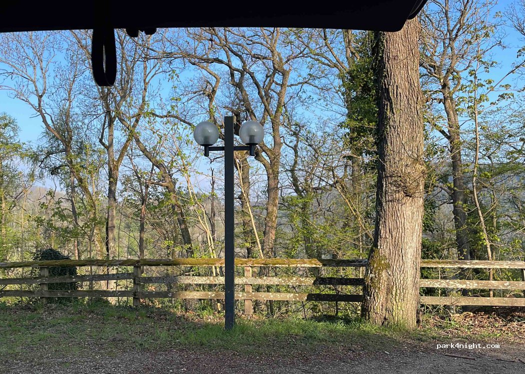 Nassau Castle parking lot where you can spend a night. Not suitable for large mobile homes as the driveway is very steep and narrow! Visiting the castle tower is free and worthwhile. Enough space for 4 vans.