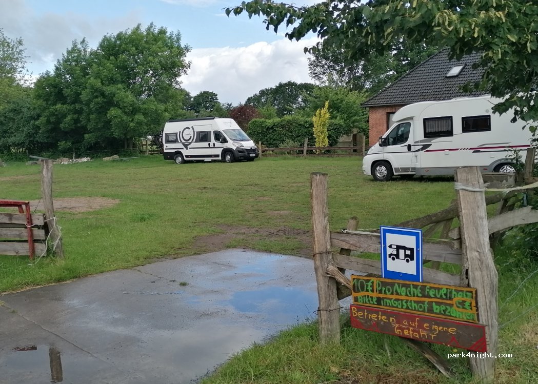 Een prachtig plekje, bij eigenaar achter op terrein. De kans dat er ook koeien kunnen lopen, omdat ze wat ondeugend zijn. Zeer vriendelijke eigenaresse. Heerlijk rustig. 180 m van het meer af waar je ook heerlijk kunt wandelen. (Warder see). Op doorreis naar Denemarken of Noorwegen, een prachtige stop.