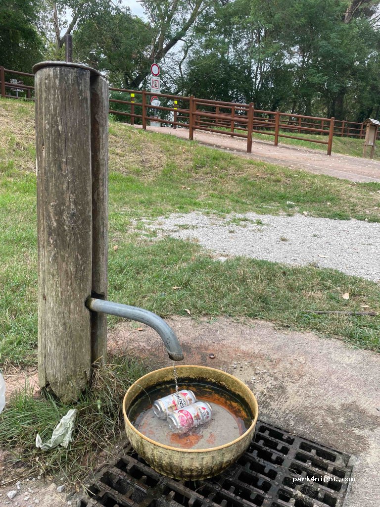 Parking with access to a naturalistic area. No parking restrictions, no services. There is a fountain but the water is drinkable. Isolated place.