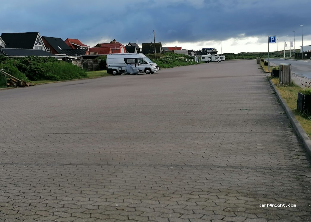 Large parking lot, which probably belongs to the Kystcenter. we stood here one night. Plenty of parking spaces available, no problems with a public toilet nearby.