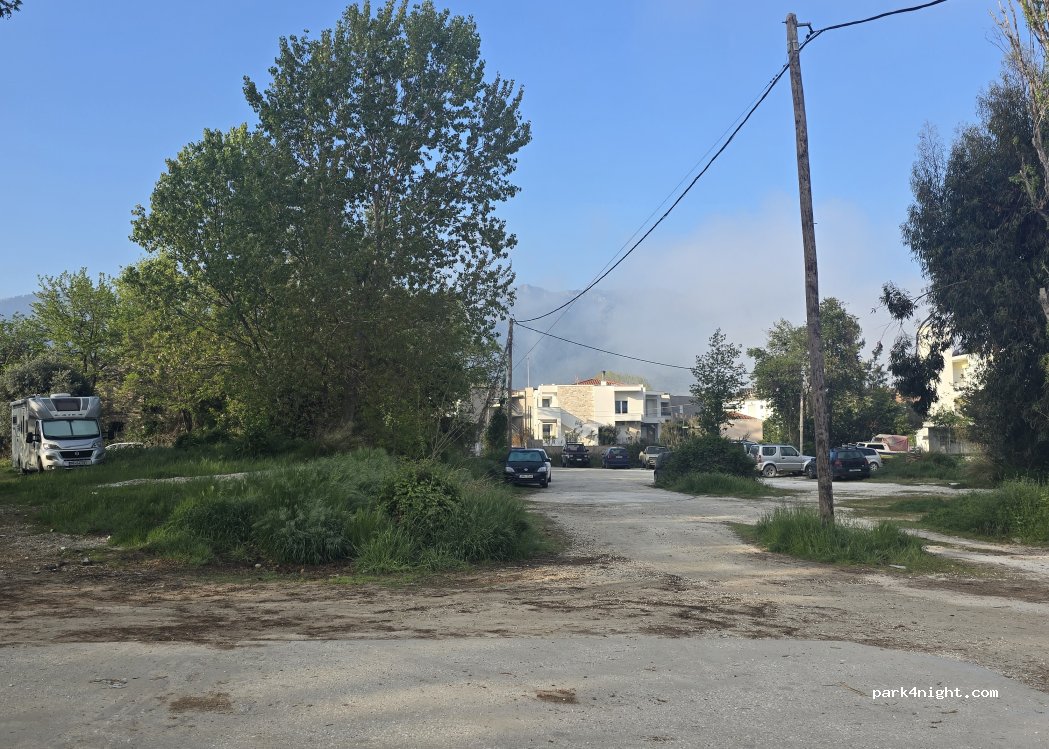 Large parking lot authorized for CC near the arrival of the ferries and especially the city center of Thassos
