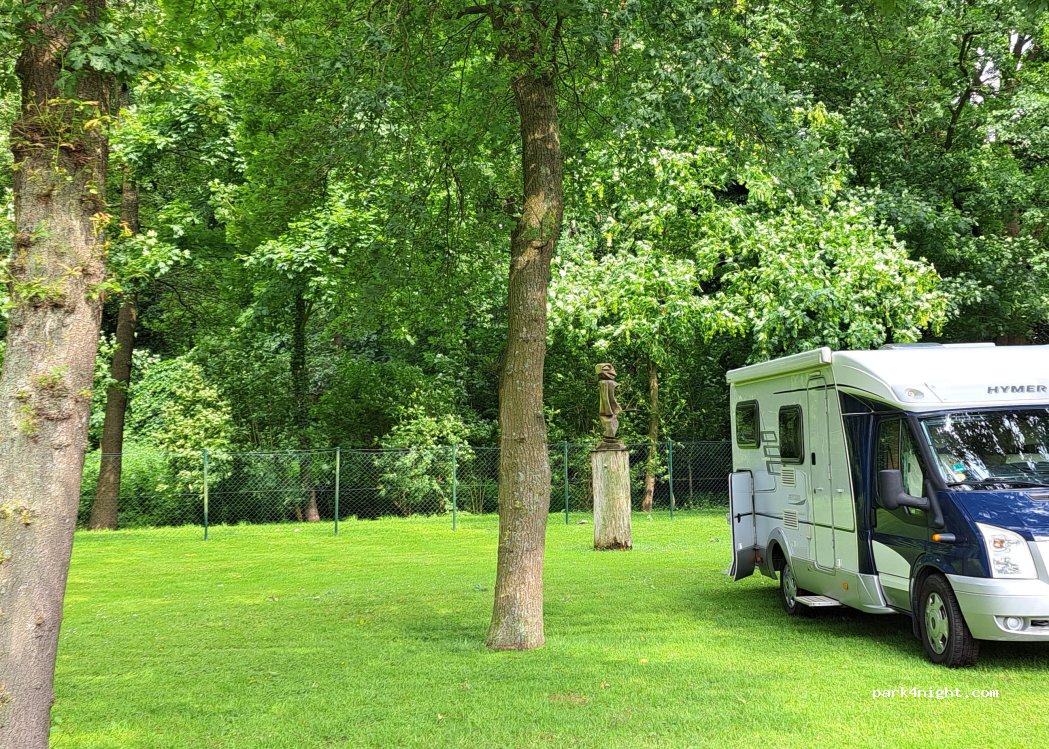 Bel emplacement pour la nuit au calme sous les arbres. Nous étions deux vans. Bon restaurant, biergarten et très grande plaine de jeux à 300m à pied. Parfait pour un stop d’une nuit!