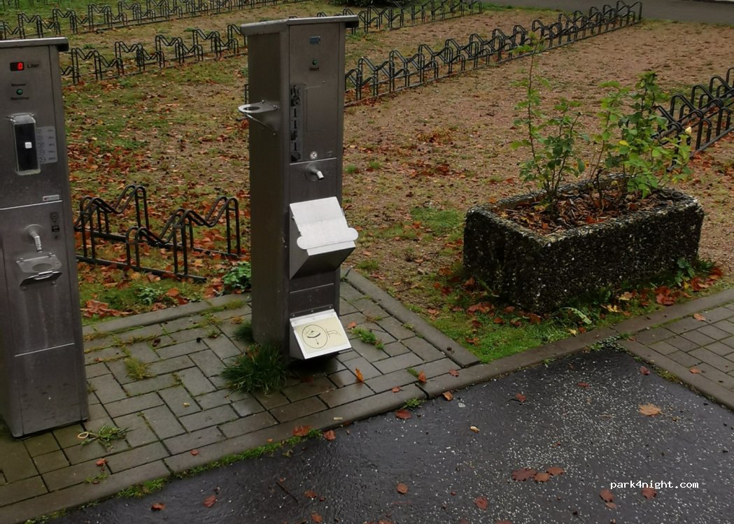 Perfekte Ver-/Entsorgung, für Campertoiletten und Grauwasser kostenlos. Frisch-/Trinkwasser 10ct/10L (Münzen passend parat halten!) und so vorab einstellbar bei der Aufnahme mit Gardena-Standard-Kupplung an der Servicestation und am Tank – oder mittelbar in Kanister oder 10L-Kanne. Sauber und günstig. 5 Sterne!