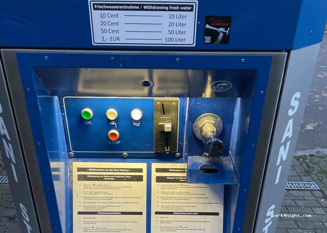 Haben nur entsorgt und Wasser aufgefüllt. Sehr ungepflegter Automat. Angeblich 50-80l pro Euro. Nach Einwurf von 3 € war unser 120 Liter Tank fast voll....