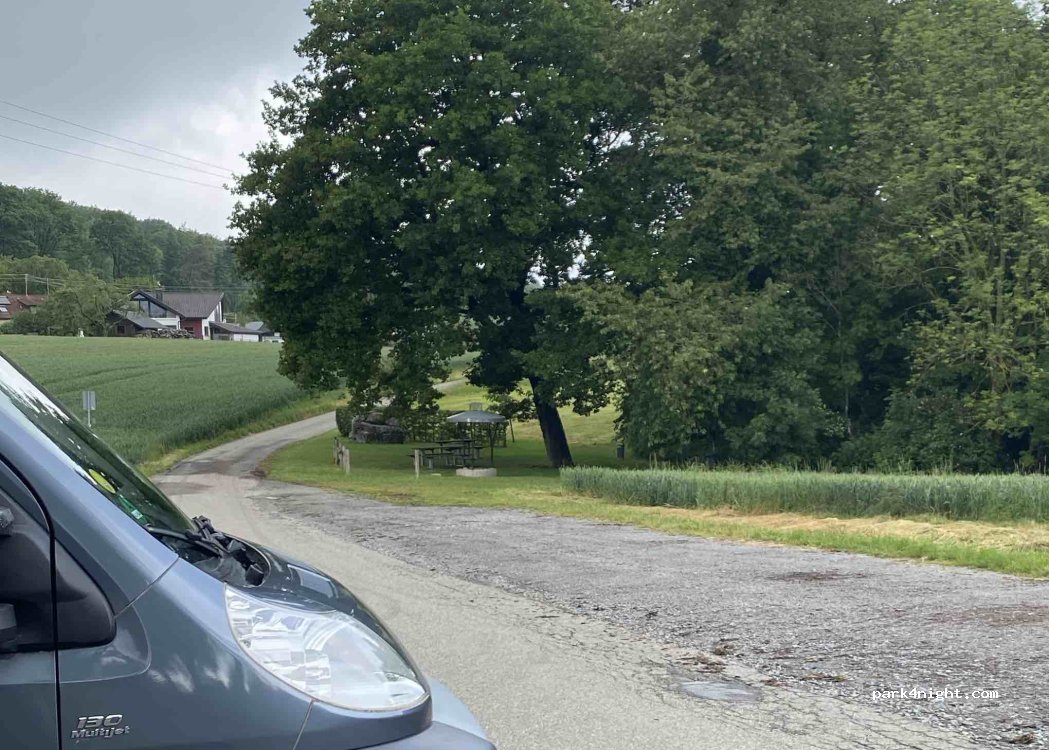 Hikers' car park 1.5 km from the "Limesblick Gleichen" and the "hexagonal tower". Quiet. Dixie toilet in place.