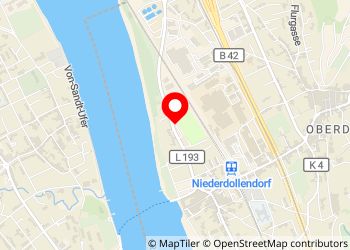 Place de parking de la ville de Königswinter dans le quartier Niederdollendorf, au "Hauptstraße 27", balisage pour 6 camping cars pour maximum 24h, près du Rhin, pas d'équipement spécial.