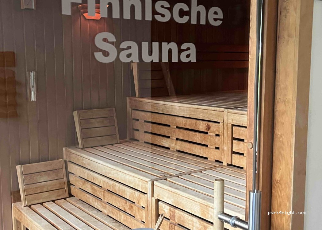 Ein Parkplatz mit schattigen und sonnigen Stellplätzen. Anmeldung im Hotel sehr freundlich und nett. Für 15 Euro können die Toiletten im Hotel 24/7 genutzt werden. Duschen und Sauna (30 min vorher anmelden) im Hotel ist auch im Preis inbegriffen.