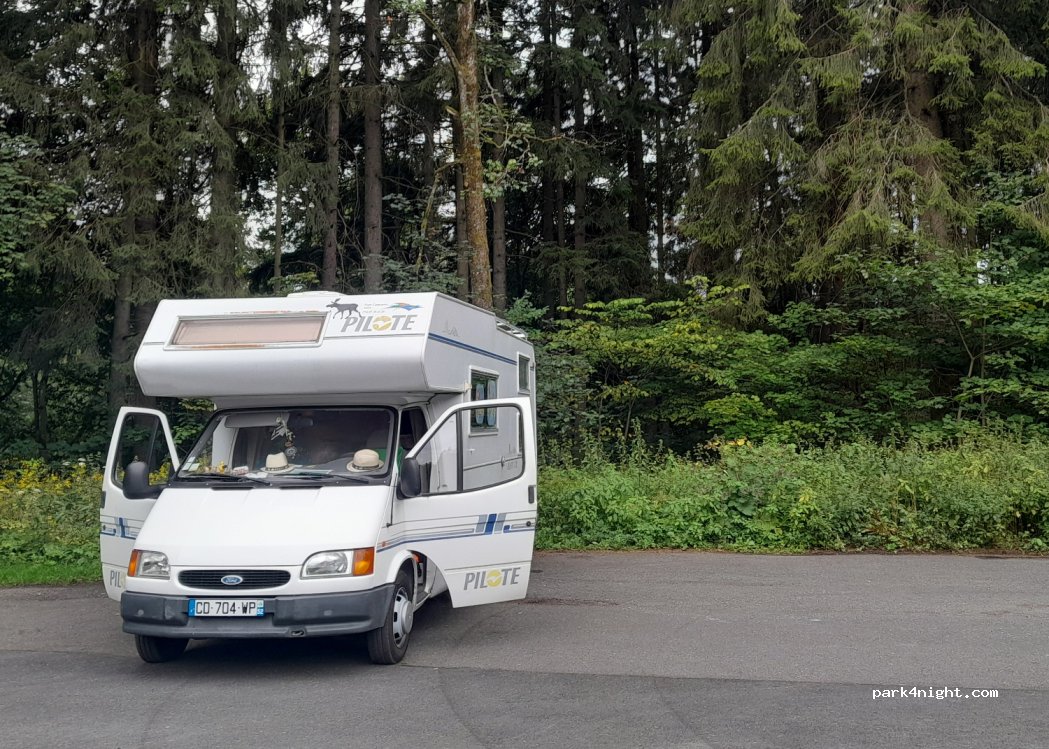 Sehr netter Parkplatz, ruhig im Wald gelegen. Für eine Nacht top. Eine Straße für vorbei, wo gelegentlich Autos fahren. Hat uns aber nicht gestört. Haben Glühwürmchen gesehen und ein Trockengewitter erlebt. War eine tolle Nacht an dem Ort.