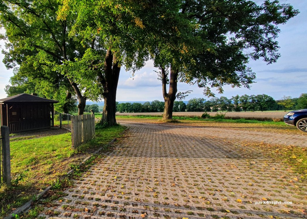 Kleine parkeerplaats bij een sportveld. Redelijk afgelegen dus de hele nacht en ochtend geen verkeer. Prachtig uitzicht op het kasteel van Ranis. Heerlijk voor een nacht.
