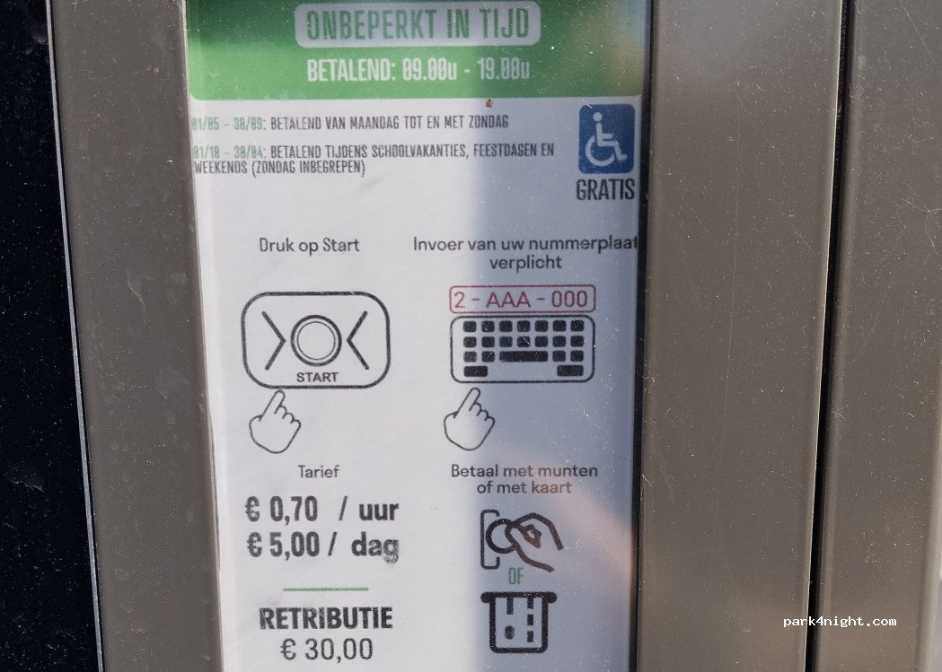 Quite place. Full of normal cars. 5 € for 10 hours + free betwen 19:00 to 9:00. Beach is near, city centrum is near. Toilet isn't there. WC is near beach. Parking place only for campervans (5 m). Next to parking is fence, so you can't go to nature.