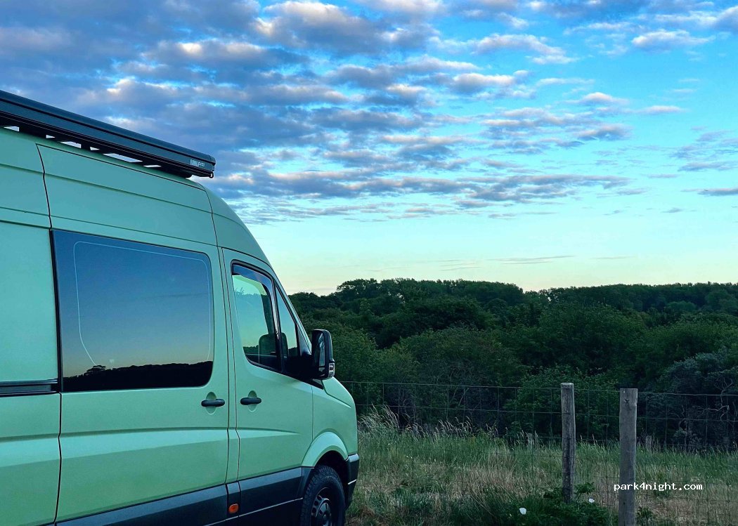 It is just a car park, so don't expect anything more. It did the job for a place to sleep. I spent the evening down in the town. Quiet and calm feel to the place. Free parking 6pm-10am ish?