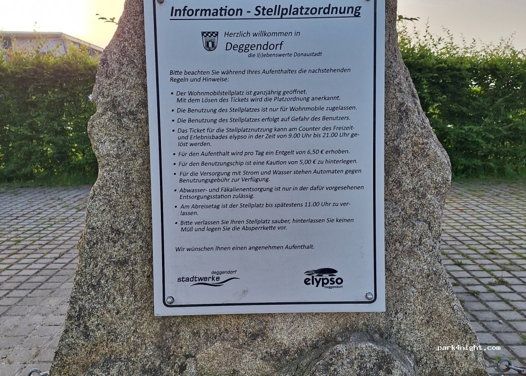 Veel muggen (juli) Zwembad is geweldig. Plaatsen langs de weg of bij de klimmuur eigenlijk even goed. Drinkwater minimaal 0,50 cent / 50 liter. Dankuwel Deggendorf!
