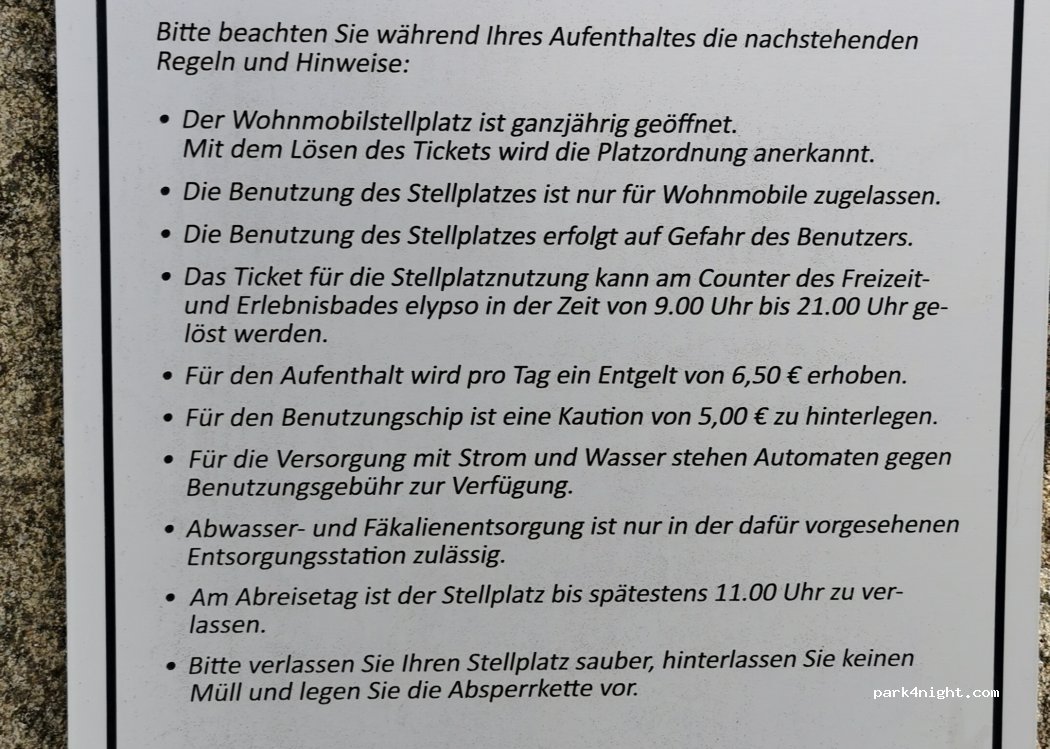 Ein schöner ruhiger Stellplatz direkt am Erlebnisbad. Entsorgung kostenlos, Strom/Wasser gg. Gebühr.