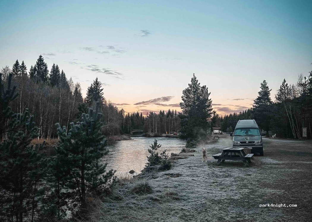 Schöner ruhiger Platz für 1 Nacht. Angenehm direkt nebem dem Fluss stehen zu können und nah zum Fulufjället Nationalpark. Picknickbänke & Feuerstellen vorhanden. Empfehlenswert.