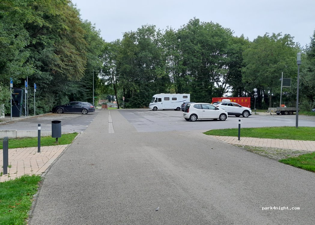 Ruhiger Parkplatz am Künstlerdorf auf Asphalt